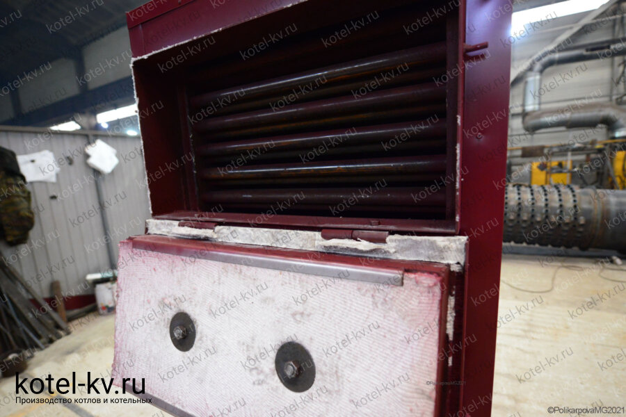 Для очистки конвективной части котла необходимо открыть дверку-люк конвективной части. Очистку осуществлять путем механическим способом при помощи скребков, либо обдувкой сжатым воздухом при помощи компрессора до полной очистки поверхностей нагрева.