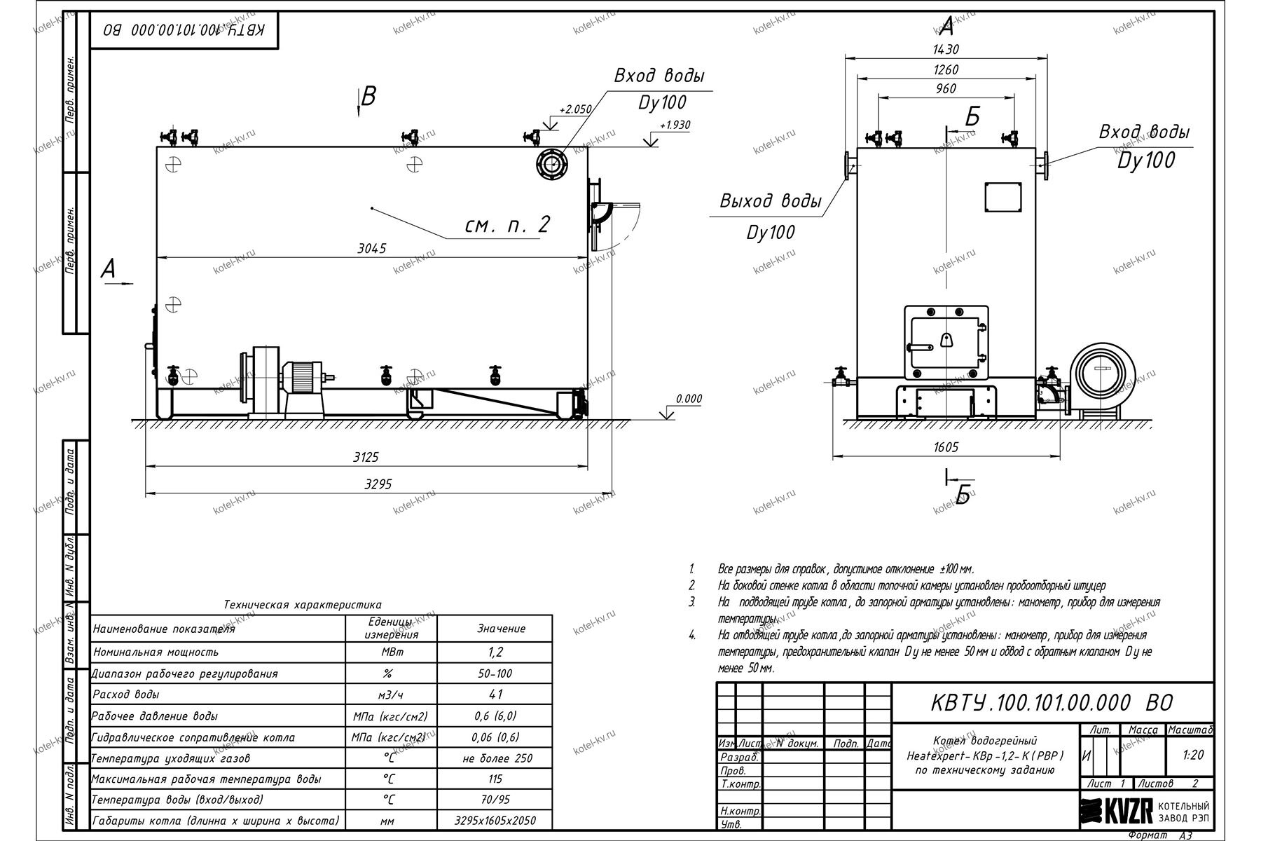 | Максимальная тепловая мощность, МВт | 1.2 | Активная площадь решетки горения, м² | 1.64 |